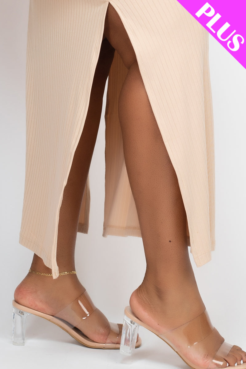 Plus Size Ribbed Side Slit Long Cami Maxi Dress
