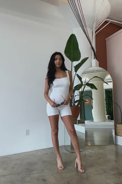 • Sleeveless tank bodycon romper from Capella Apparel featuring a scoop neck and slim bodycon fit highlighting curves